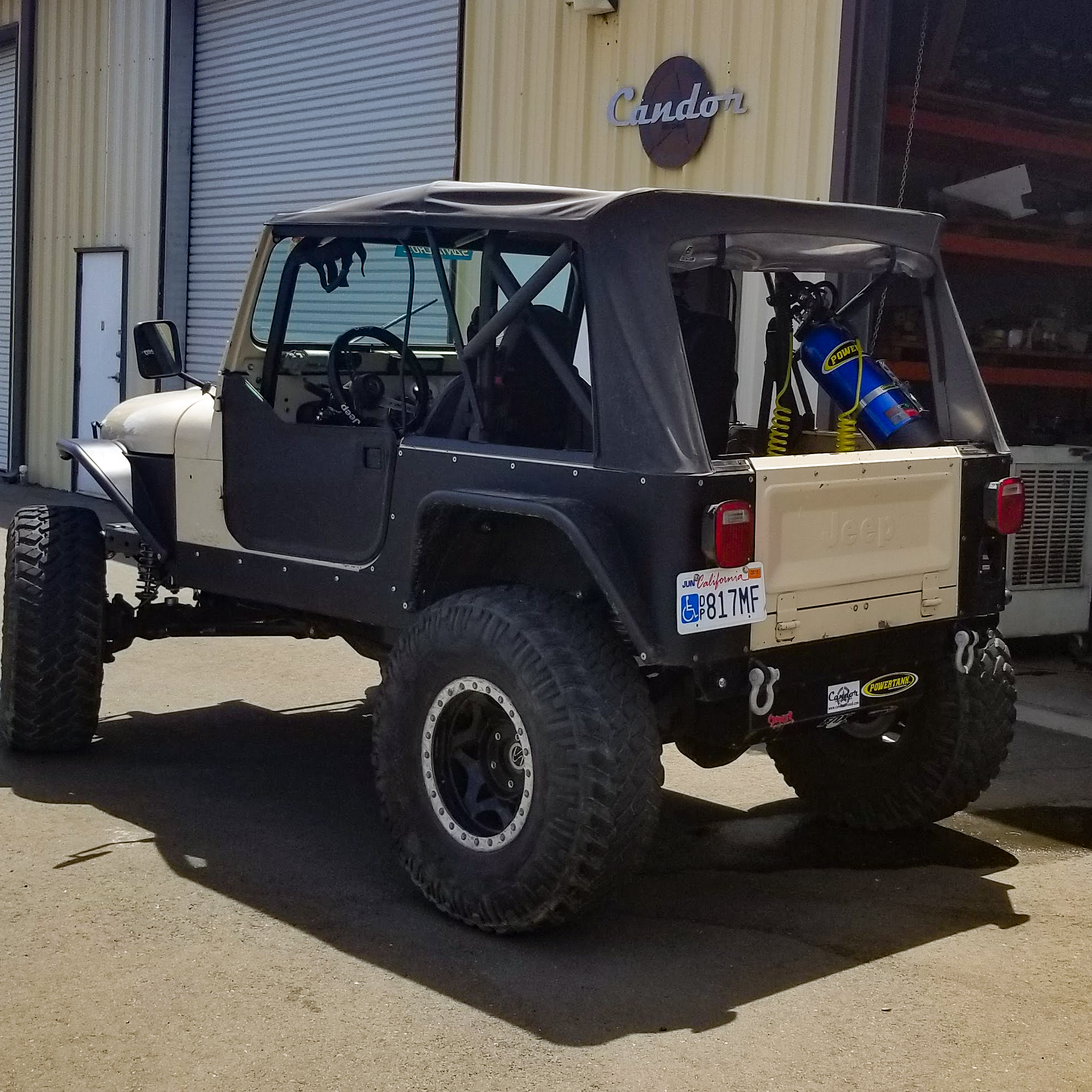 This Power Tank and Super Bracket are simply mounted to the bed of this MJ Jeep.