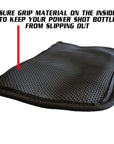 It is made of Ballistic nylon with a sure grip material on the inside to keep your Power Shot bottle from slipping out.