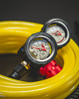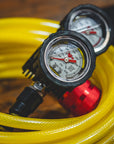 The Dual-Fill Shock Inflator Gauge can charge two ORI Struts or shocks at once or be used one side at a time to dial in exact pressures.