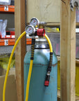 This SuperFlow PRO Series regulator is different than the one that comes on our Power Tank CO2 systems in that it comes built with a nitrogen nut/nipple assembly. All you do is supply the tank of nitrogen from your local gas supplier. The high pressure braided air hose is 30 ft. long to reach all shocks and is hard mounted to the regulator for a leak-free connection. Outlet pressure is adjustable from 0-400 psi.