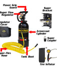 This incredible system mounts easily in just about any vehicle or you can swap out our Super Bracket for a Speed Bag to make storage even easier. The best part? This self-contained, compact system is portable and easily moved from vehicle to vehicle, walked down the trail to help a broken rig, or transported from the chase truck to the race car all without power cables or long air hoses to run.