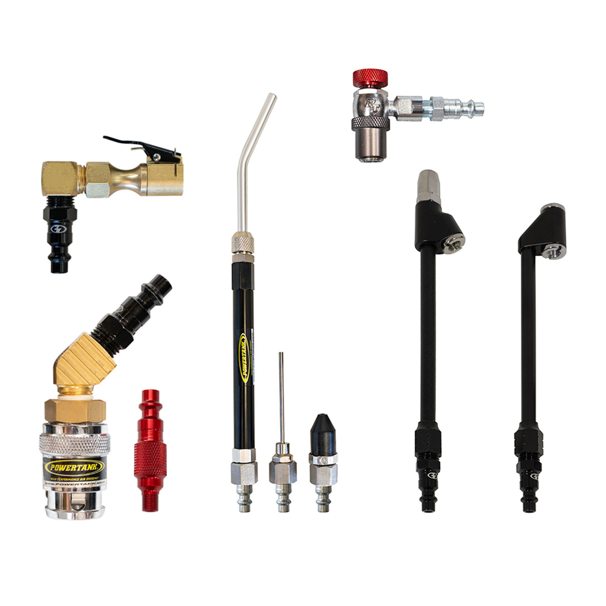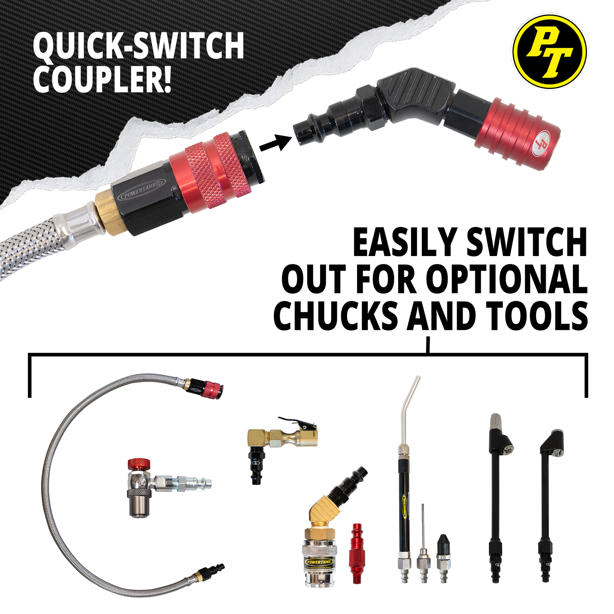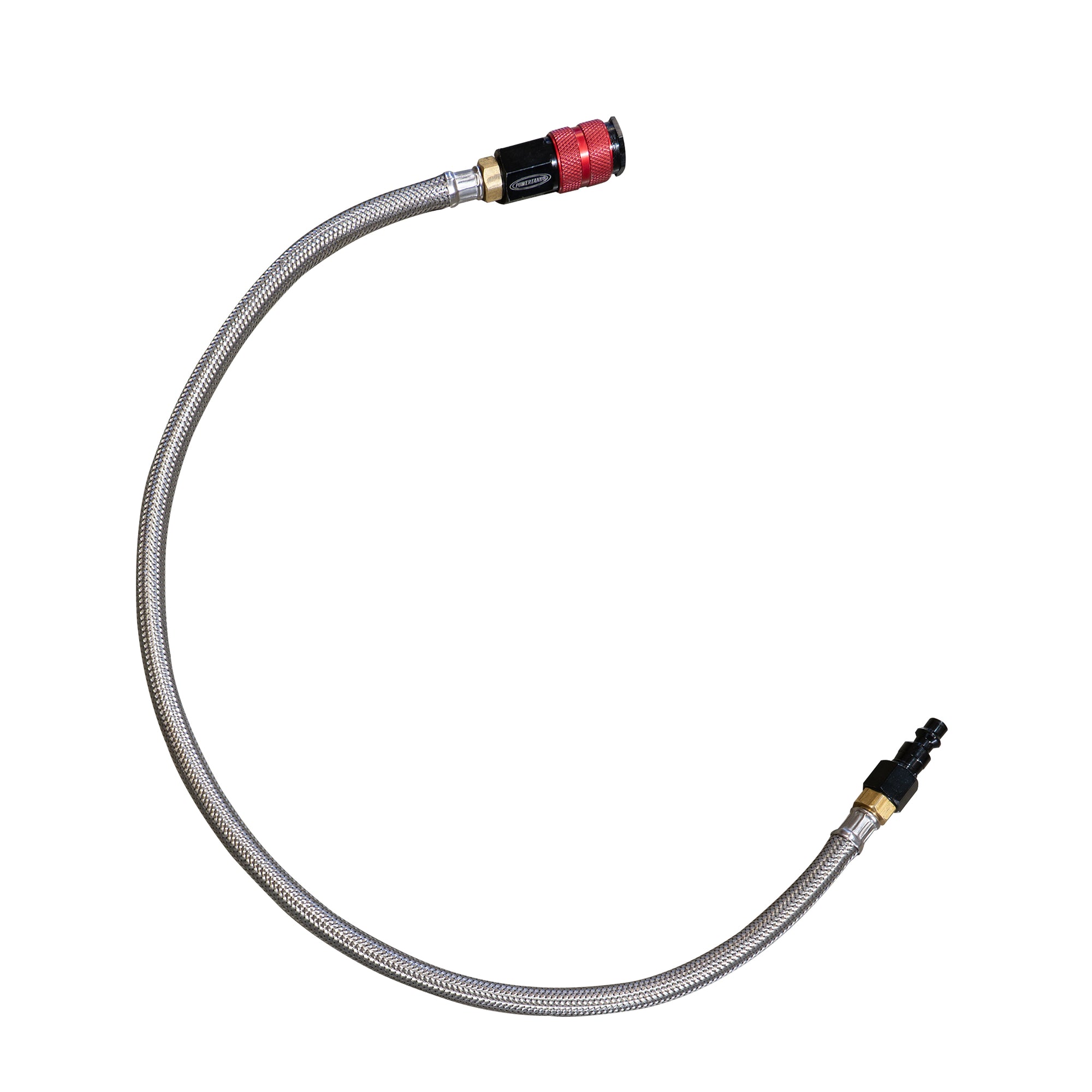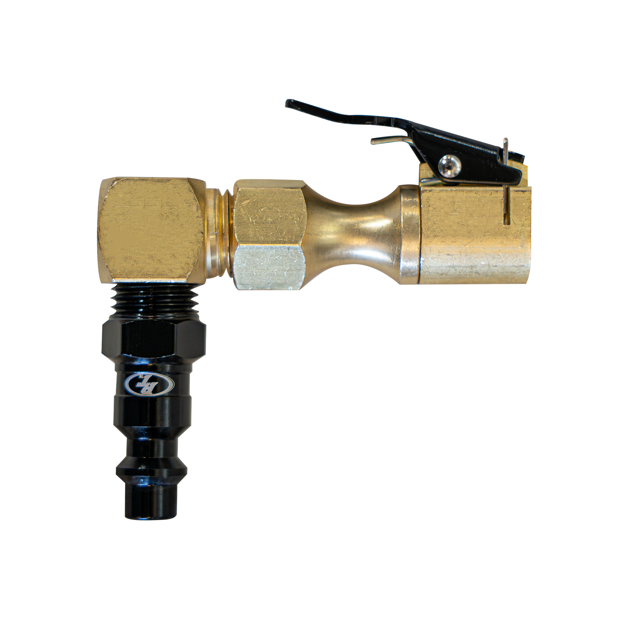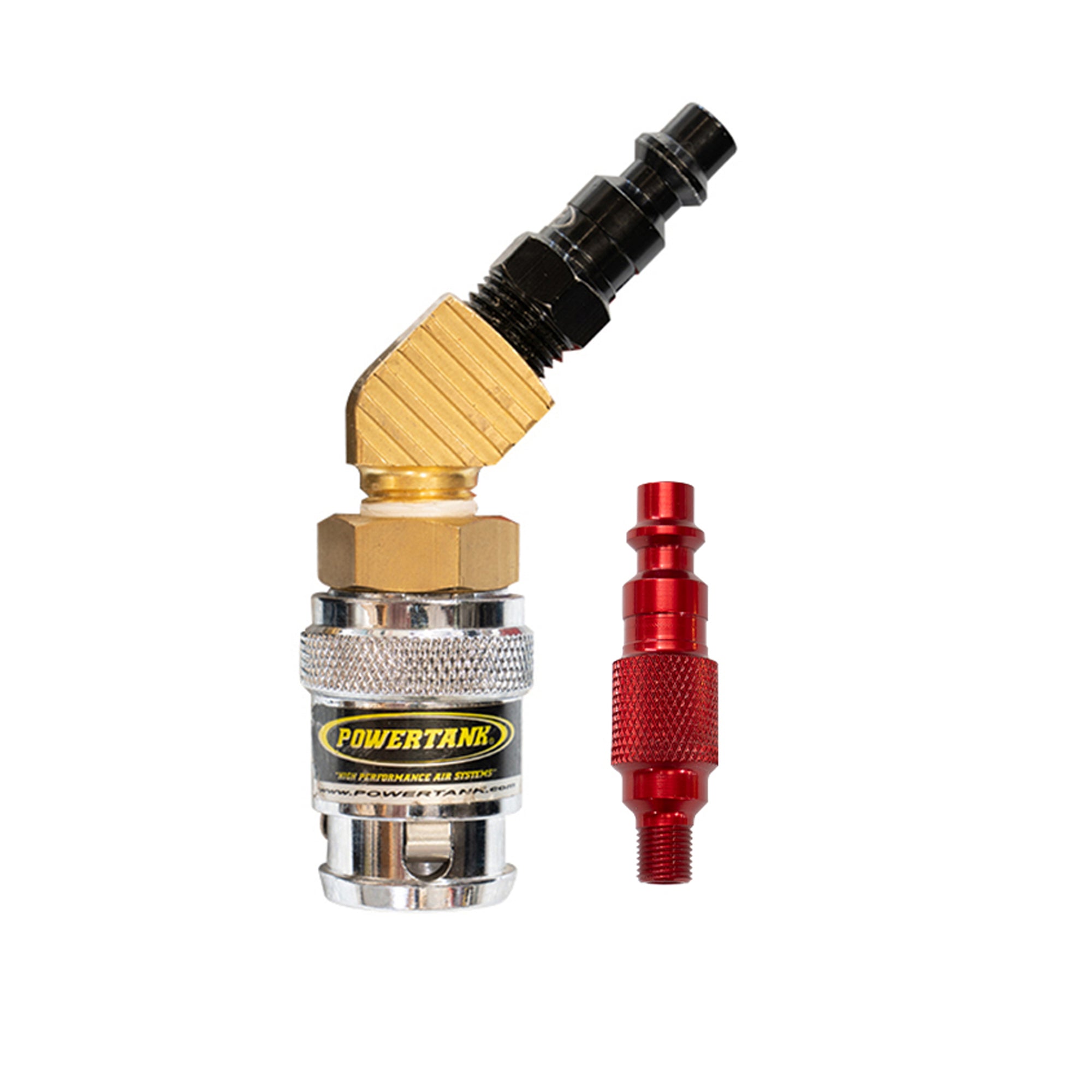 This upgrades any generation Power Tank Tire Inflator Gauges from the original yellow hose models to the Ventoso™ line to the new RED MOD standard. This kit adds a quick-switch RED coupler between the end of your hose whip and whichever tire chuck you are currently using. A 1/4" industrial plug is inserted in to your current tire chuck for use with the RED coupler.