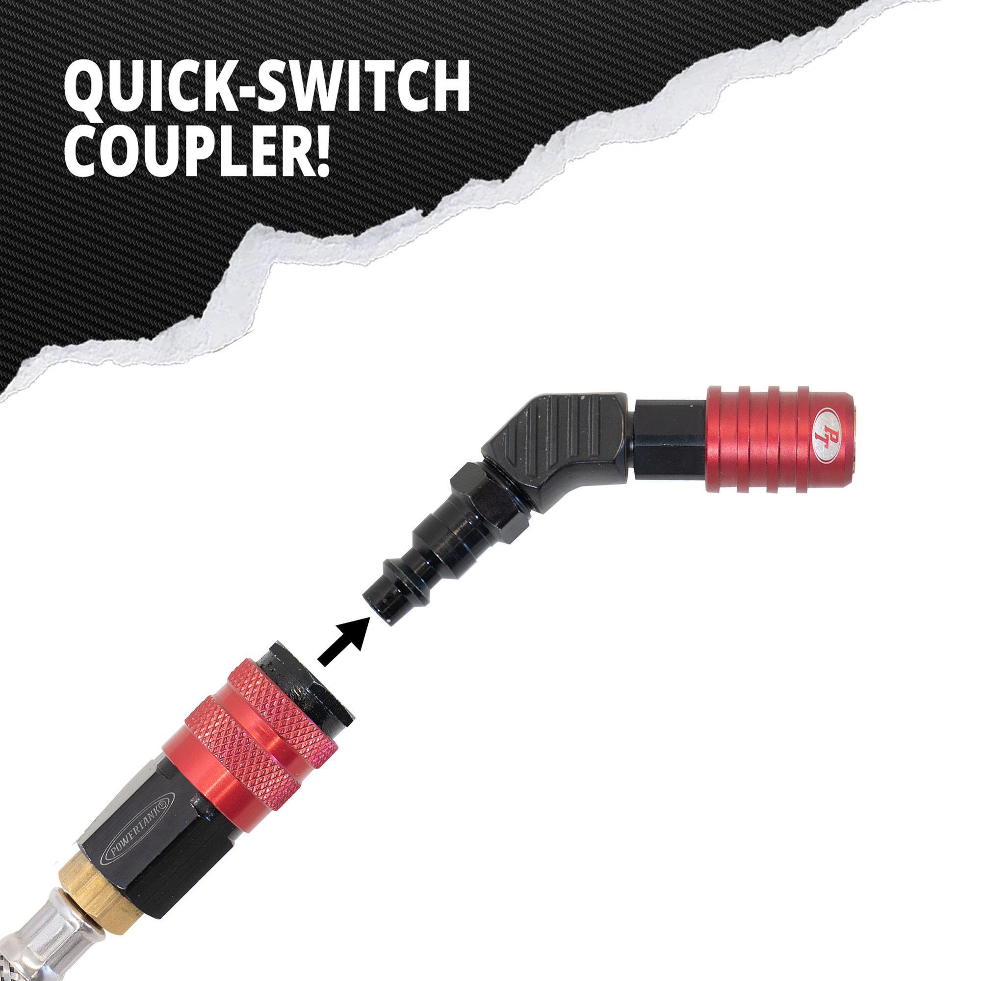 • RED Coupler with 1/4" female NPT threads to screw on to the end of your hose whip
