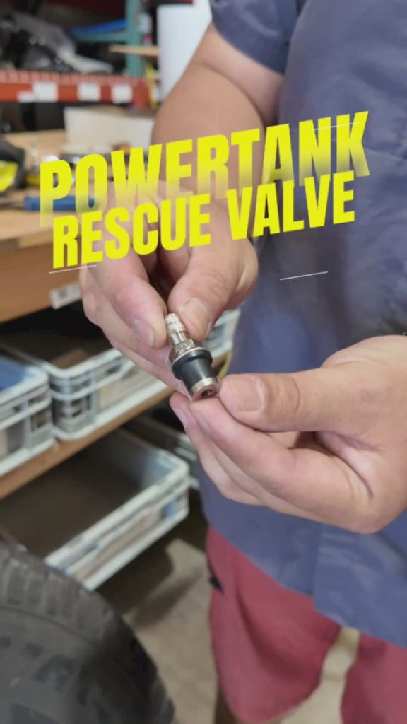 The Power Tank Rescue Valve is a must-have for any off-roader. It is an emergency valve stem replacement that installs easily from the outside of the wheel reducing what is normally a headache-inducing trail repair to a simple 5 min. fix.