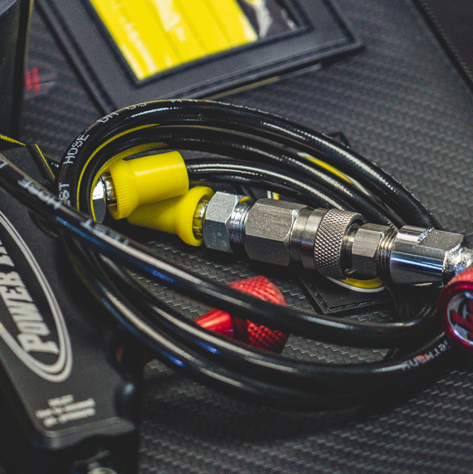 Soft-coated stainless steel lines boast 9000 psi working pressure while remaining flexible and won't damage paint.